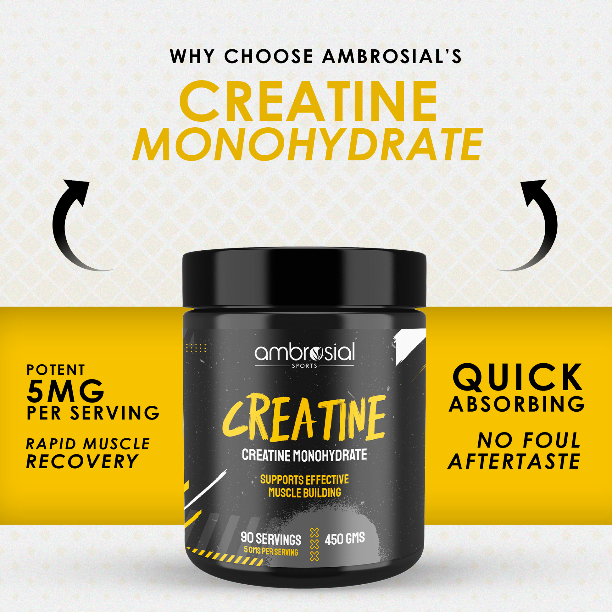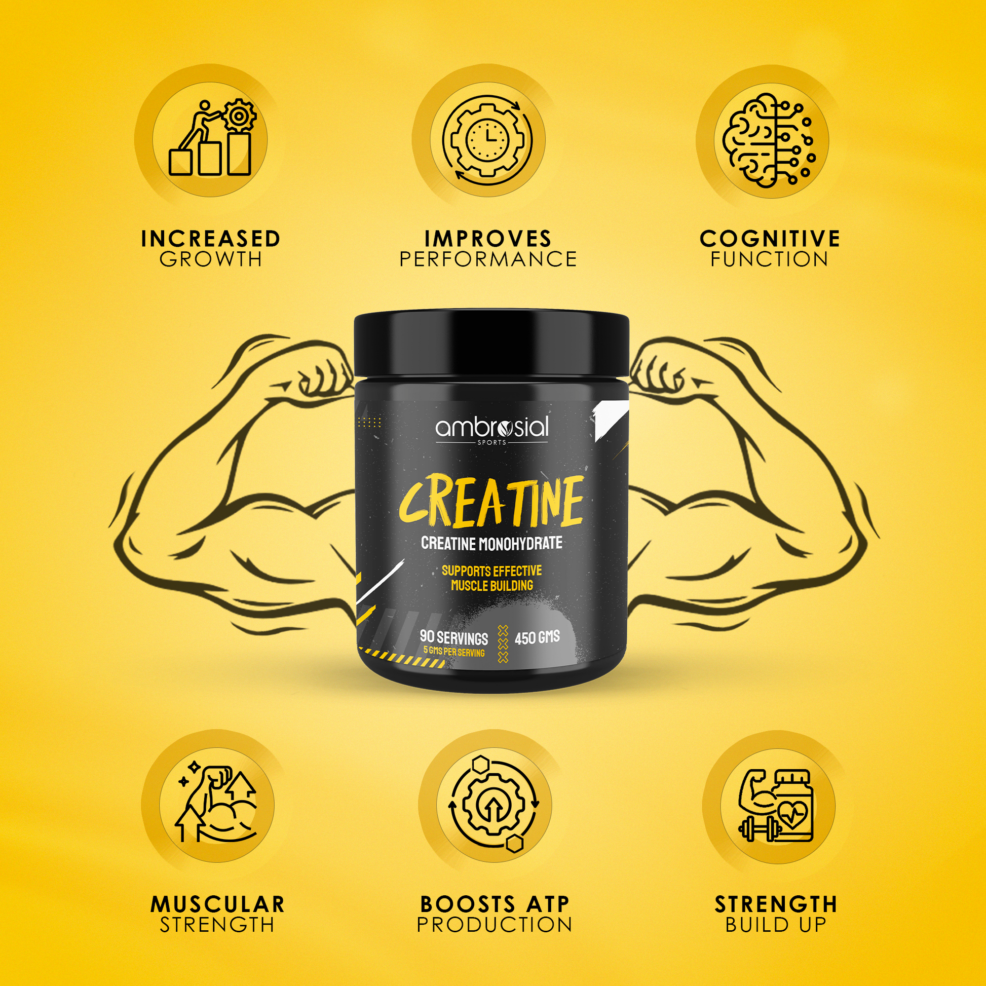 Ambrosial Creatine Monohydrate 450mg | 90 Servings | Pure Muscle Power Boost | Enhance Strength & Endurance Naturally |Creatine Supplement for Fitness & Bodybuilding | Non-GMO & Gluten-Free