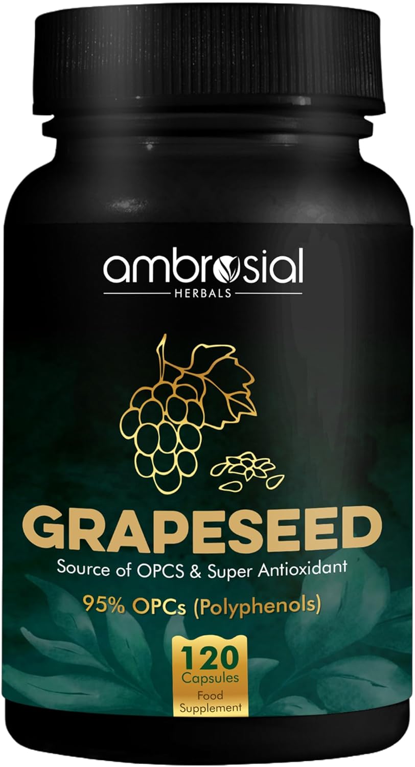 Ambrosial Grape Seed Extract Capsules | 95% OPCs Polyphenols | High Strength Grape Seed Supplement | Strong Antioxidant | Pack of 1-120 Vegan Capsules