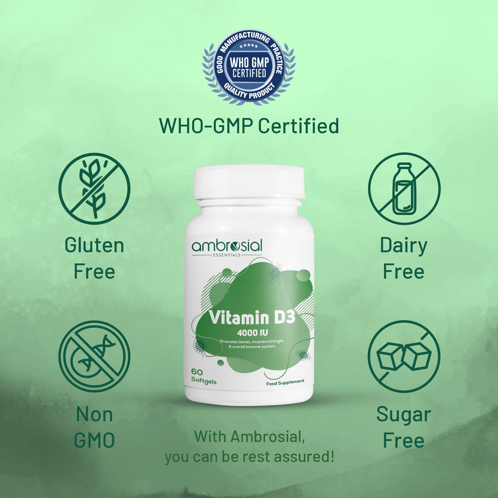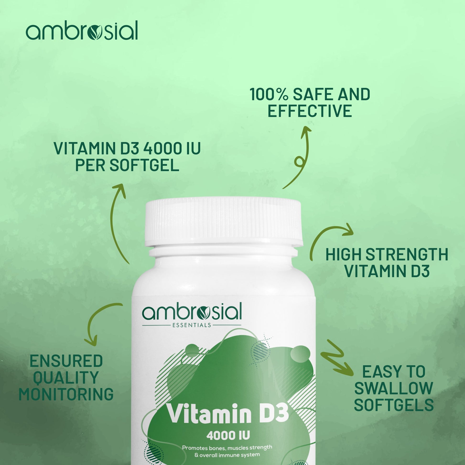 Buy Ambrosial Vitamin D3 4000 IU online within UAE, including Dubai, Abu Dhabi, and Sharjah, and we also get this delivered to Saudi, Oman, Bahrain, Qatar, Kuwait, etc.
