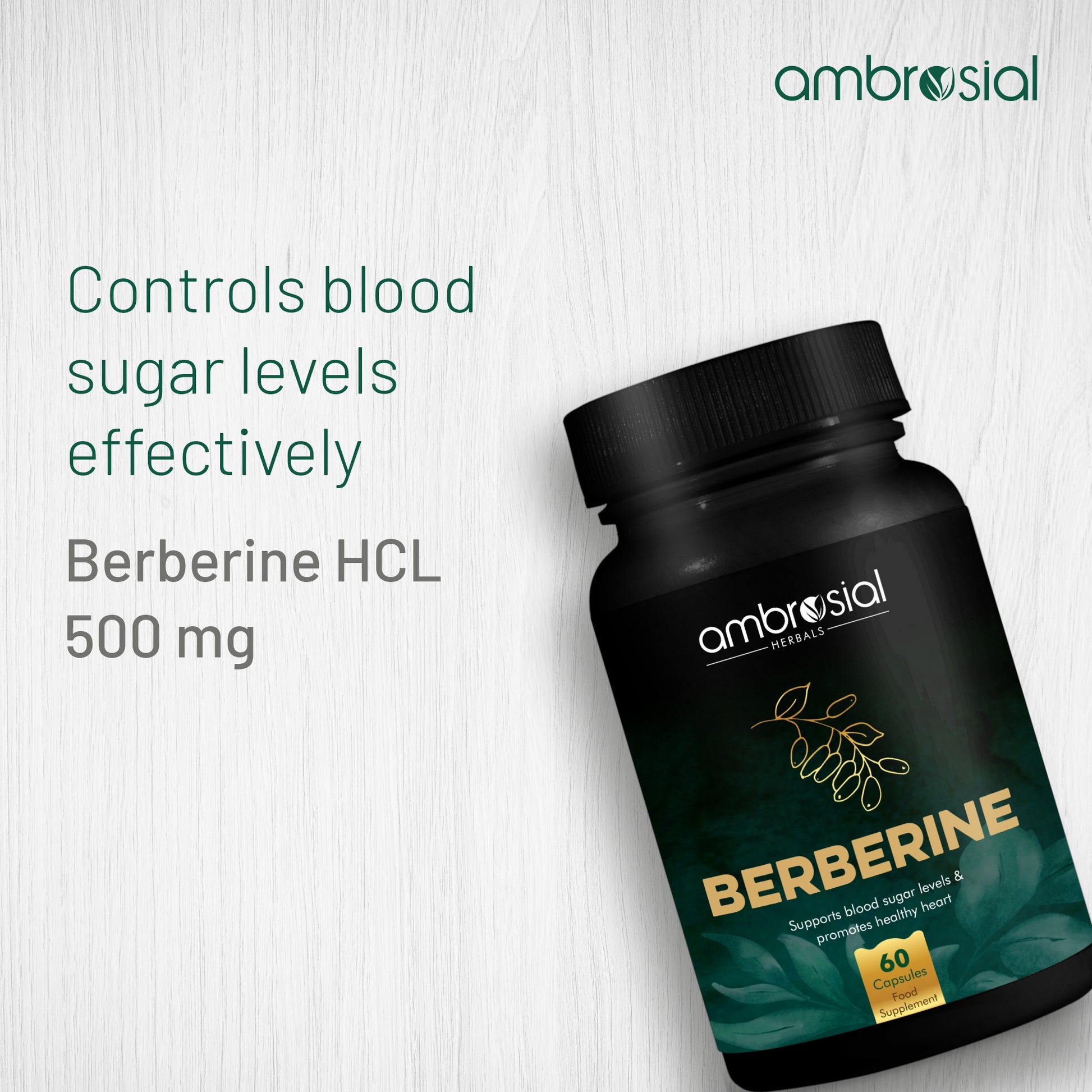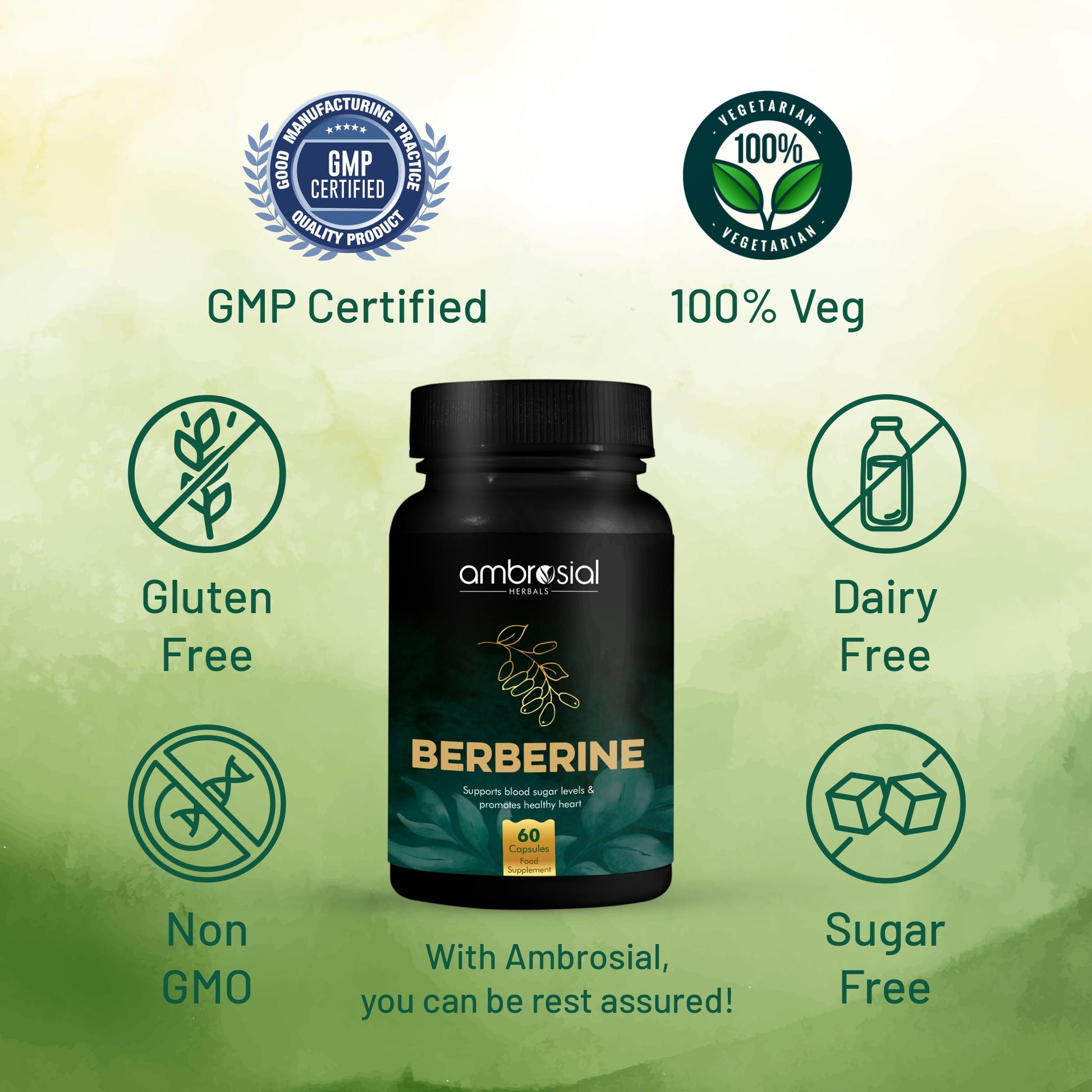 Ambrosial Berberine 500mg | Promotes Healthy Heart Functions | Supports Blood Sugar Levels | 60 Vegan Capsules