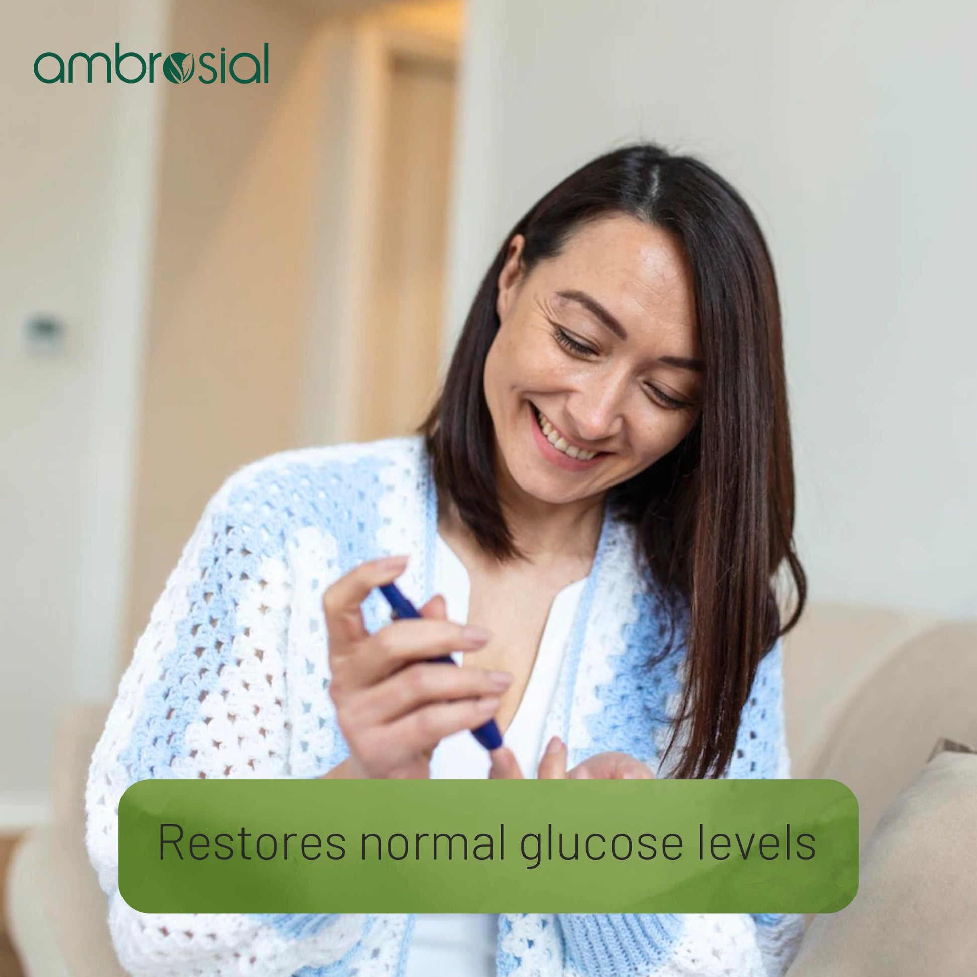 Manages Blood Sugar Levels: Experience the benefits of Ambrosial Berberine supplement for managing blood sugar levels. Our supplement effectively lowers blood glucose levels and enhances the absorption of sugar by muscles, providing a boost of energy. This is particularly beneficial for individuals with elevated blood glucose levels, helping them balance their glucose levels effectively.