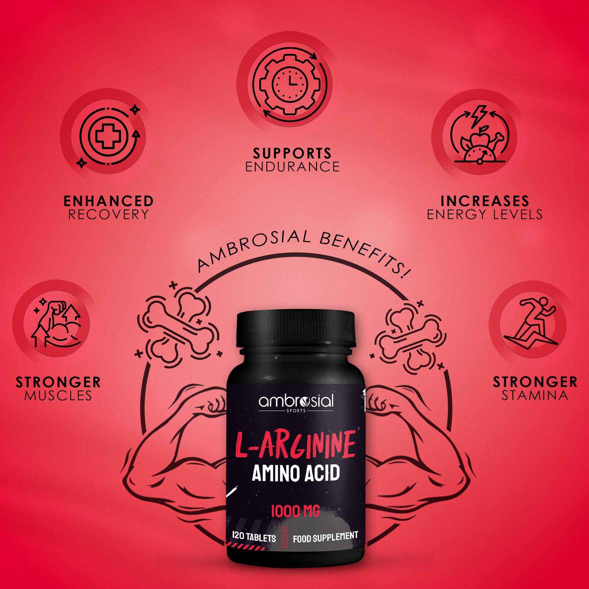 Ambrosial L-Arginine Amino Acid | 1000mg for Boosting Stamina & Supporting Rapid Muscle Pump | High Absorption L Arginine Supplement | Pack of 1-120 Tablets
