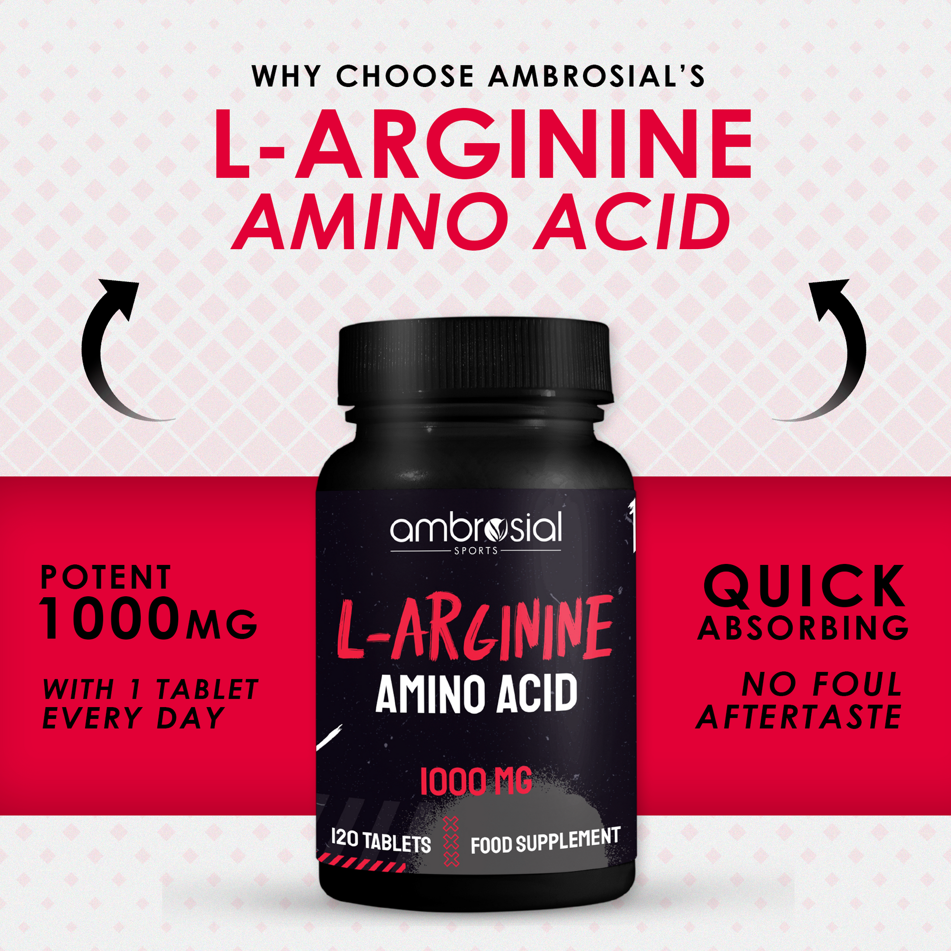 - Why Choose Ambrosial L-Arginine Amino Acid?: Ambrosial's L-Arginine Amino Acid supplement delivers 1000mg per tablet, offering a potent dose in each serving. Designed for quick absorption and a pleasant experience without a foul aftertaste, it stands out for its high-quality formulation. This essential amino acid supplement comes in a convenient pack of 120 tablets, making it a great choice for those seeking a reliable and high-strength product to support their nutritional needs.