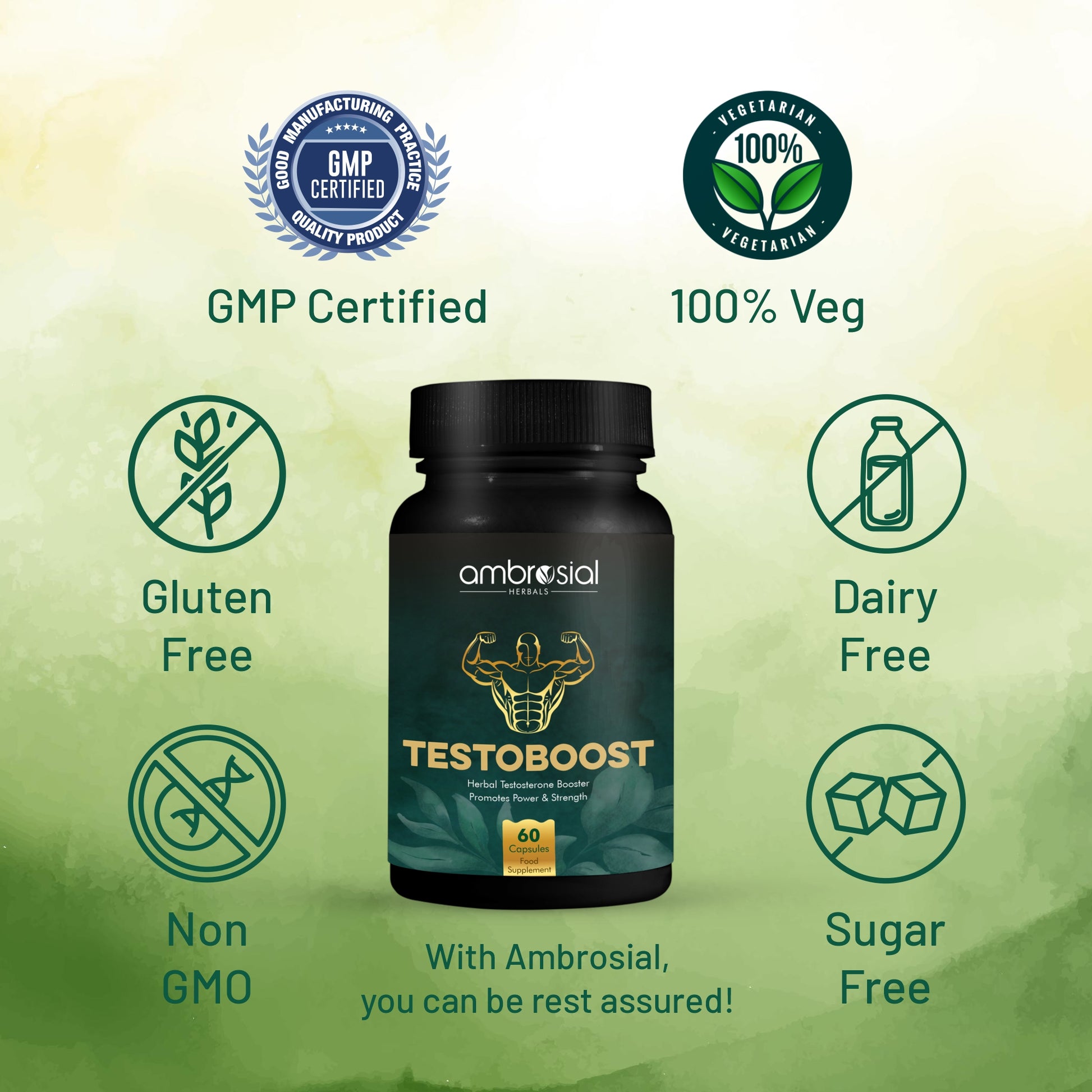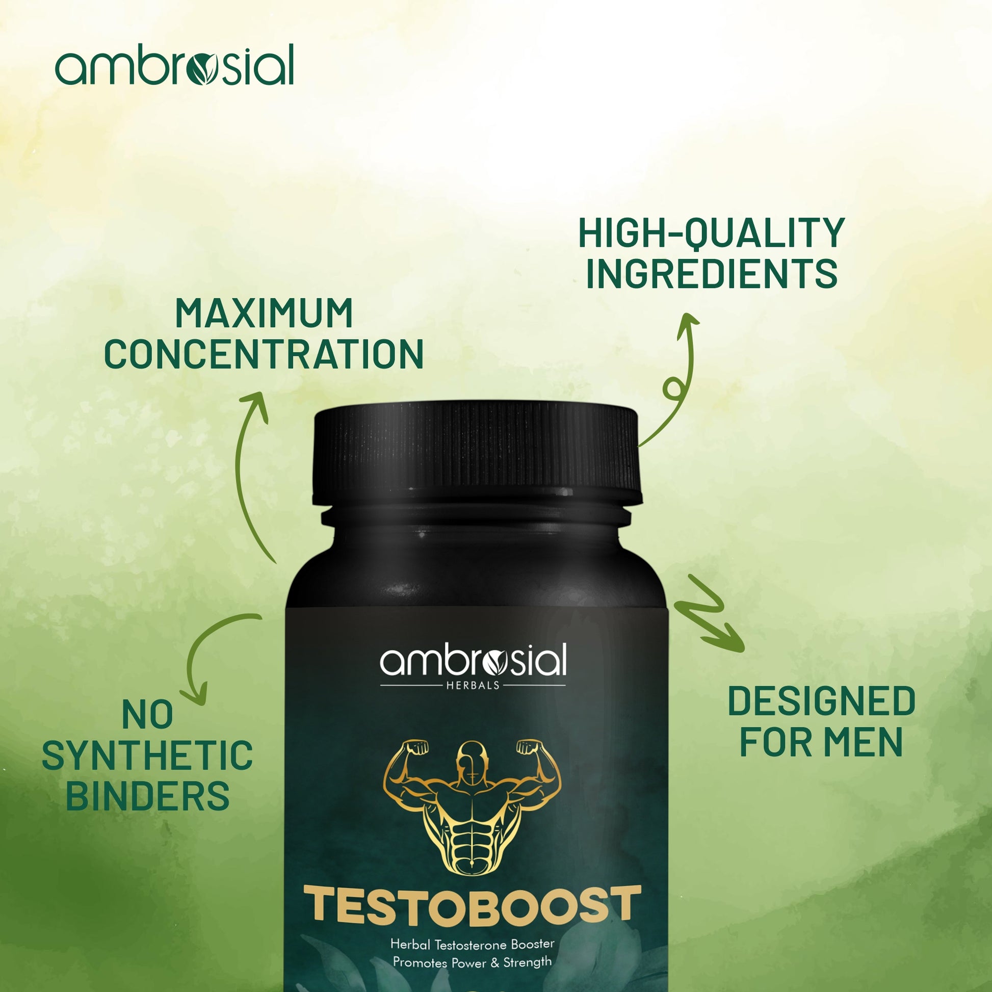 - WHY AMBROSIAL: Ambrosial Testoboost is a premium Herbal Testosterone booster supplement for men. It's a synergistic blend of 3 natural herbs.
